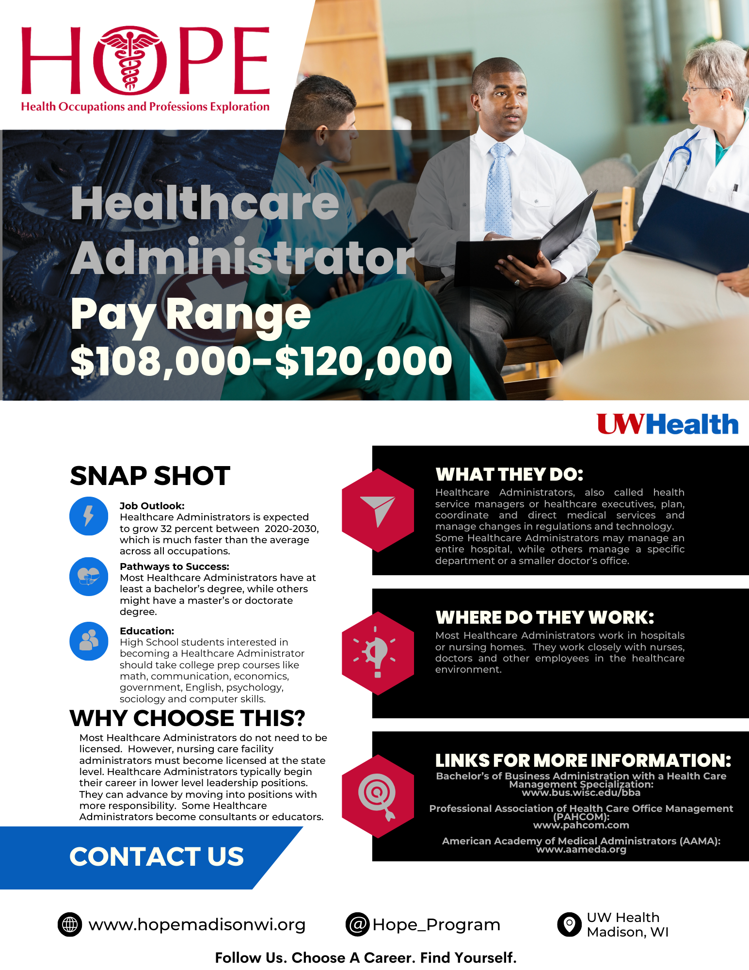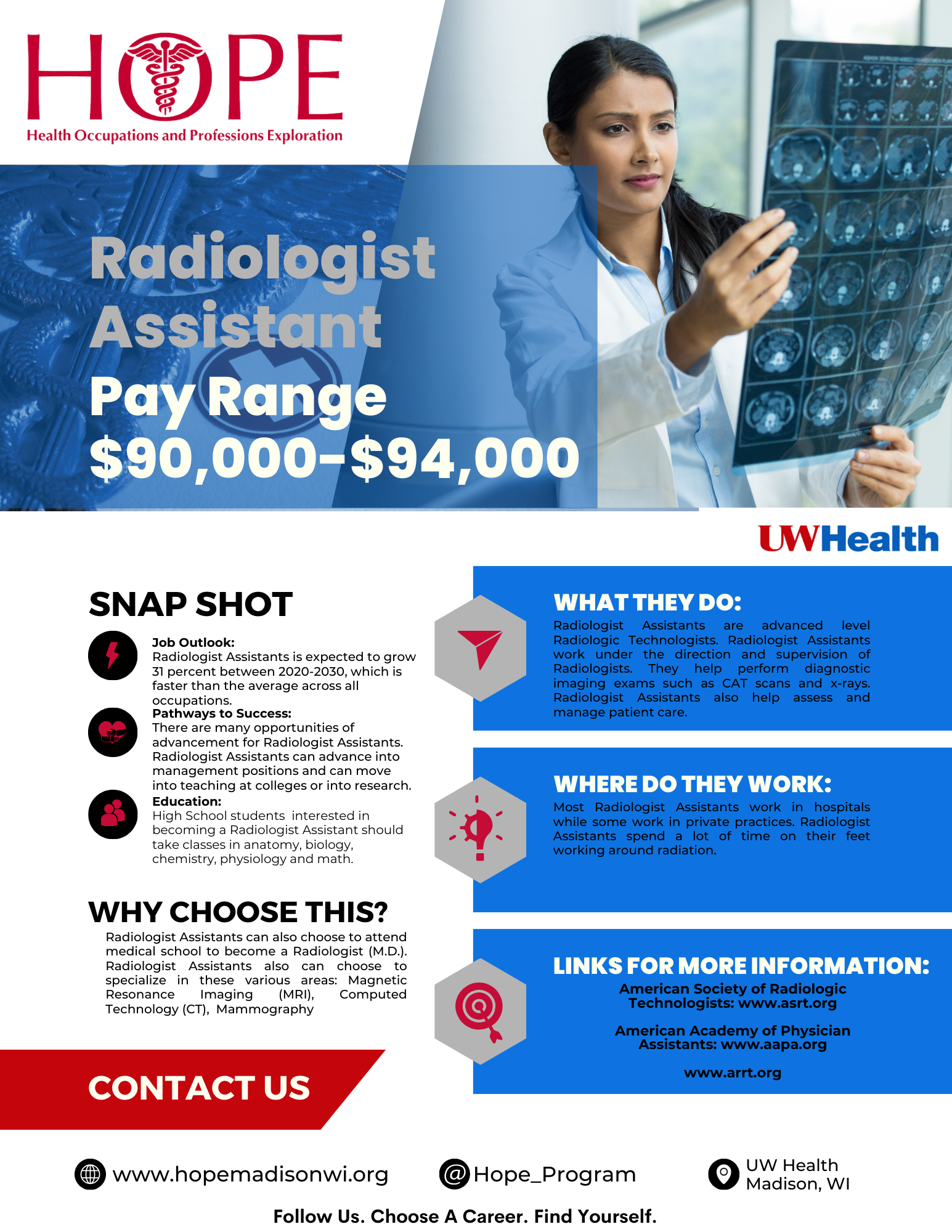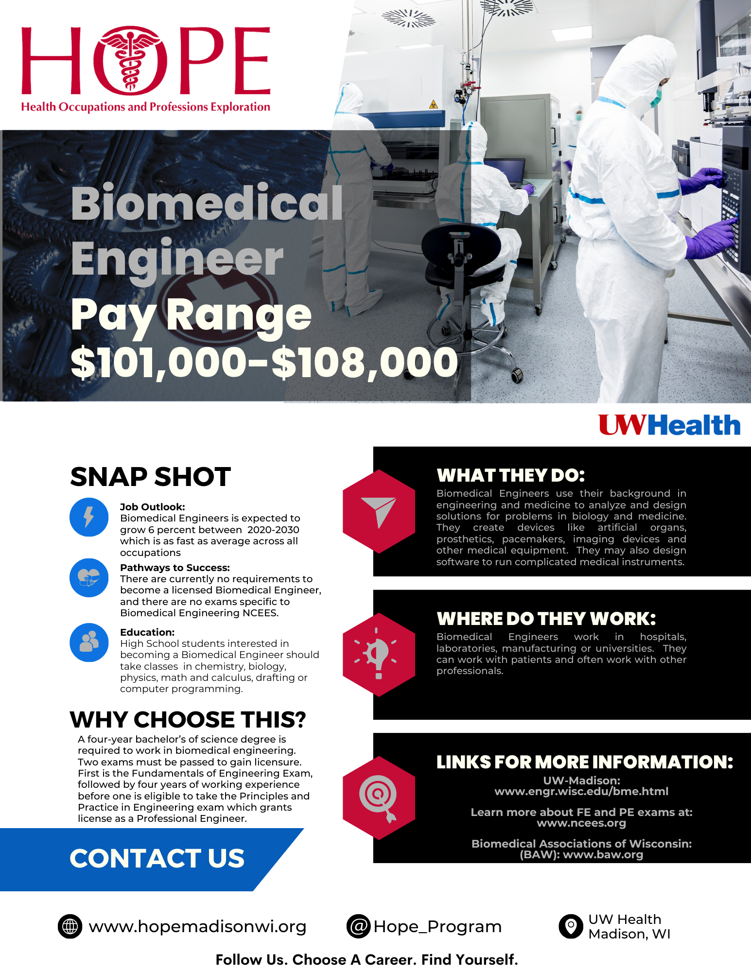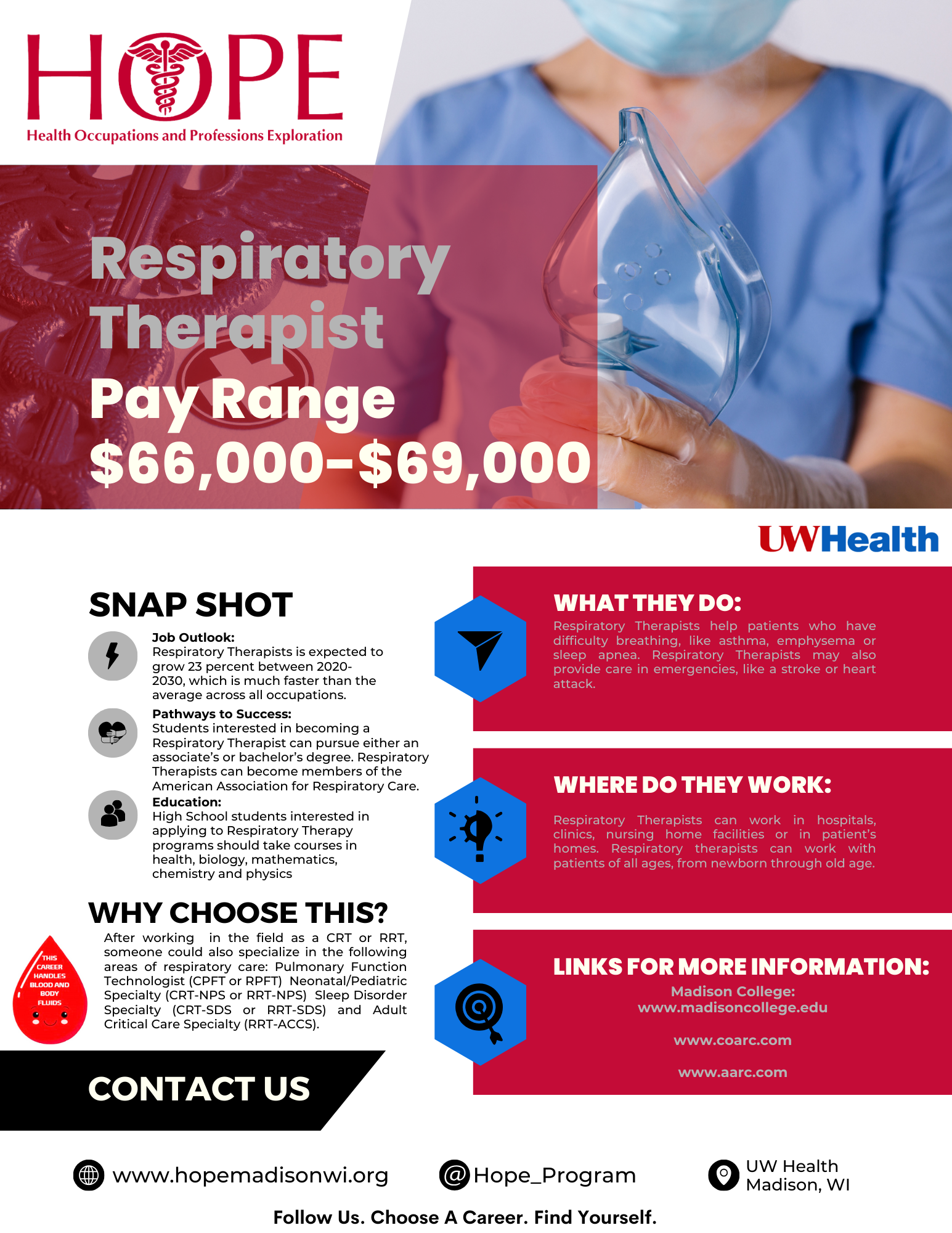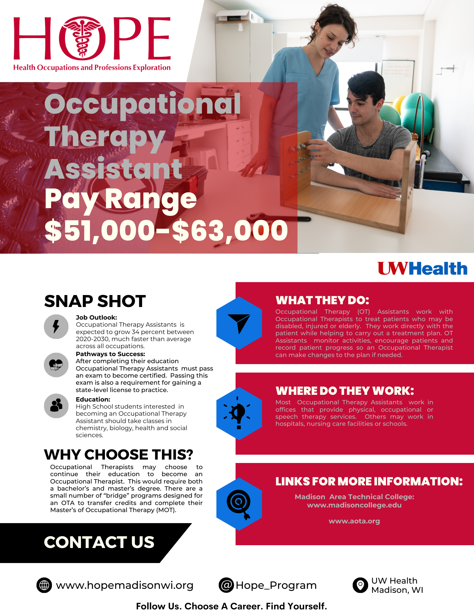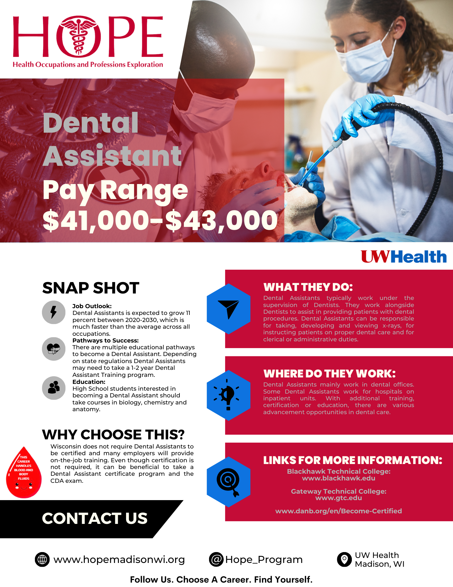 Click and Explore each bubble to explore specific pathways and click the career titles to bring up the over 70 different career “snapshots” in healthcare. This career explorer includes tons of useful information including career descriptions, education requirements, employment outlook percentages, and more!