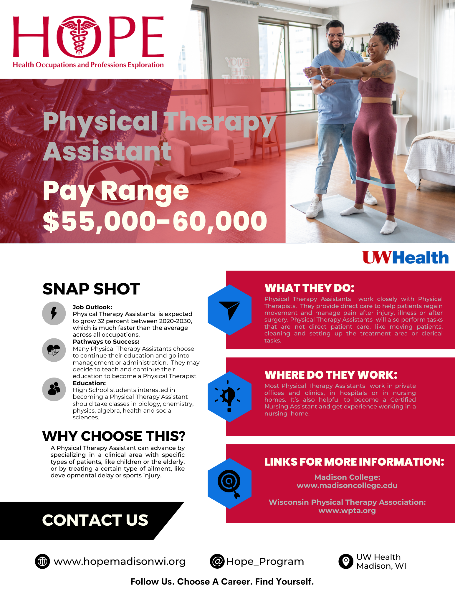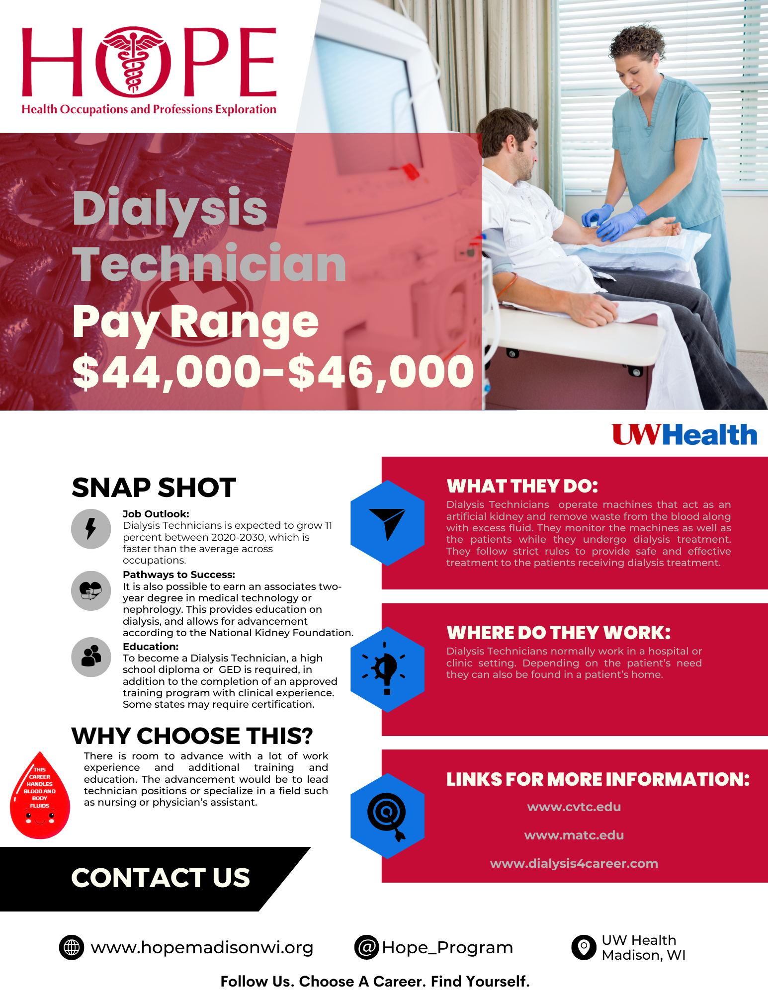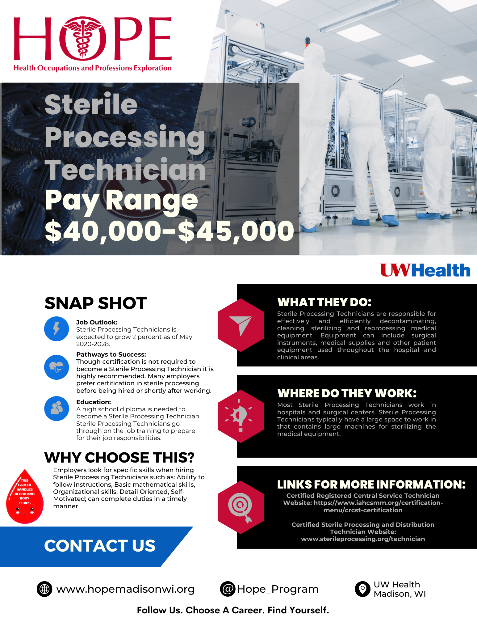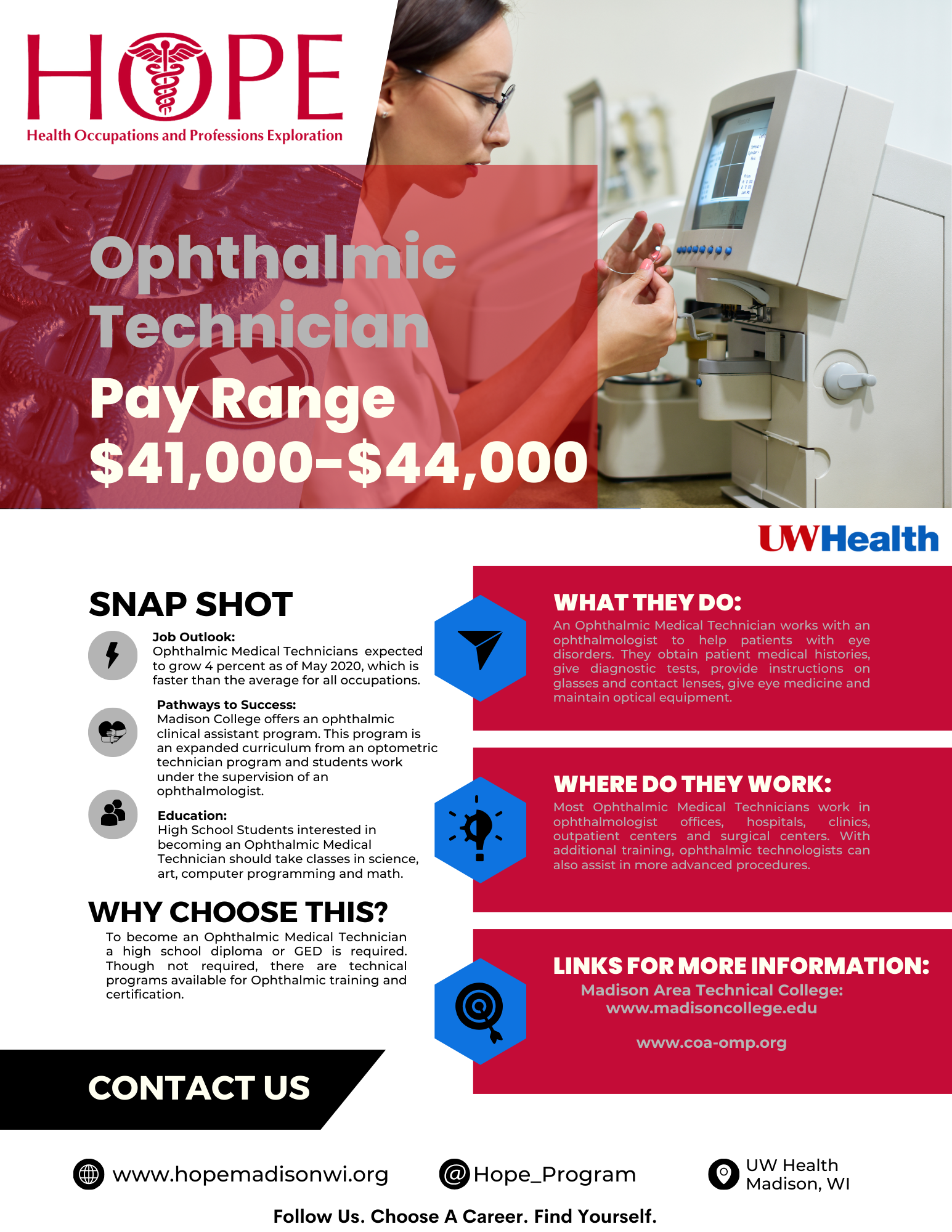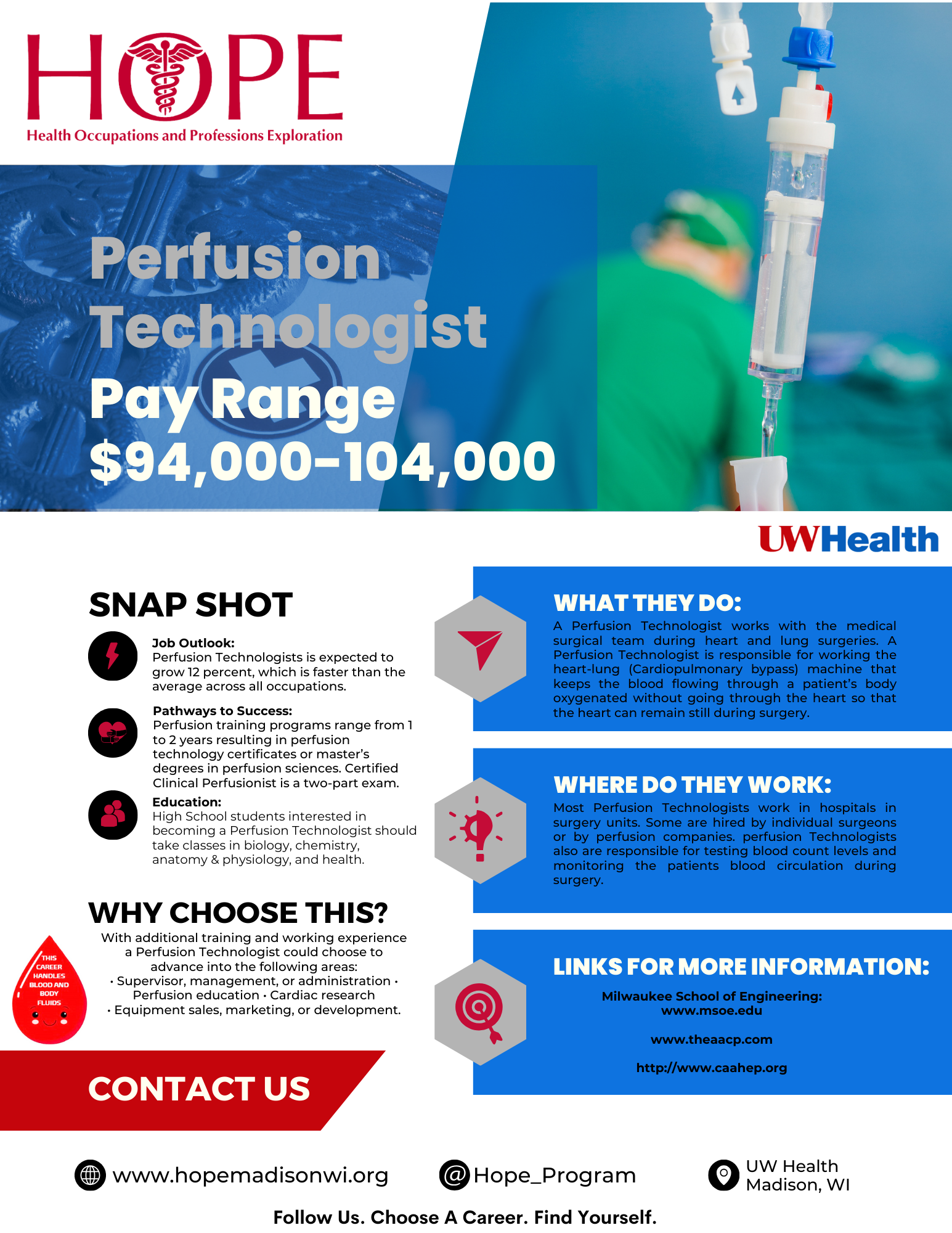 Click and Explore each bubble to explore specific pathways and click the career titles to bring up the over 70 different career “snapshots” in healthcare. This career explorer includes tons of useful information including career descriptions, education requirements, employment outlook percentages, and more!